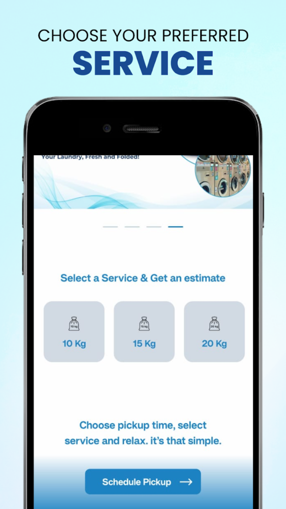Choose your service, input laundry weight, and book a time.